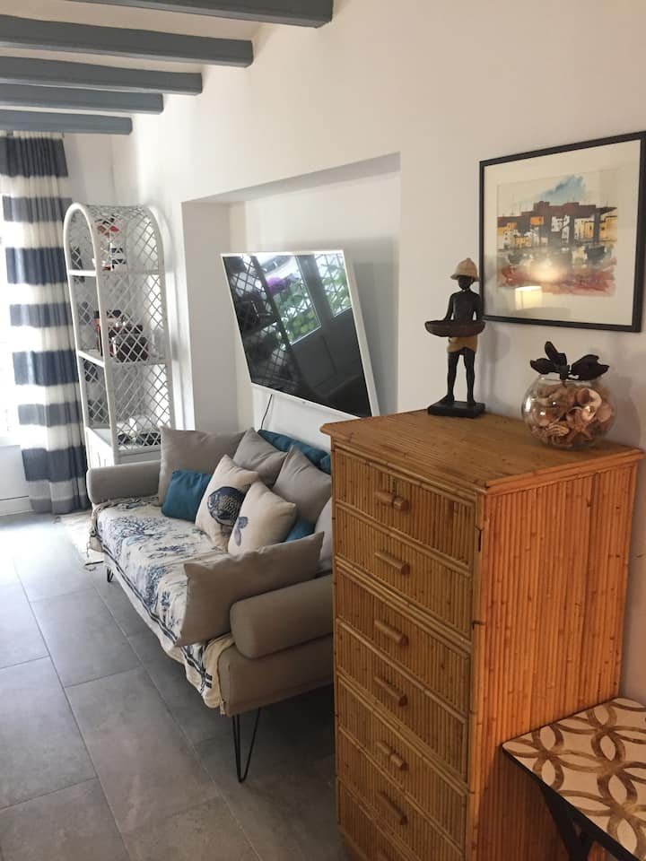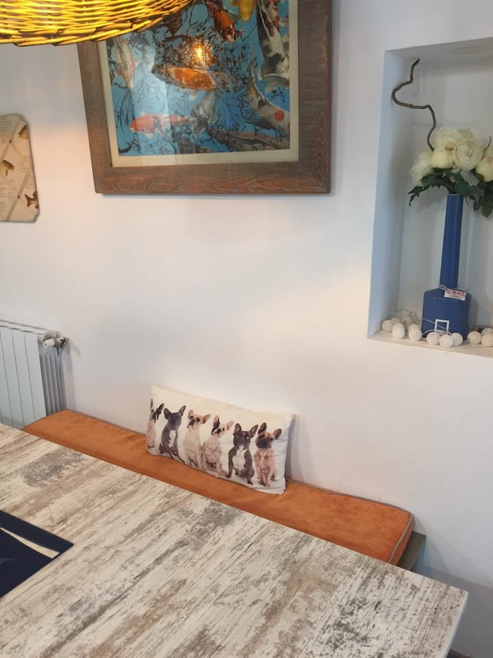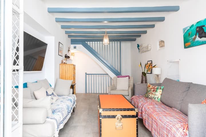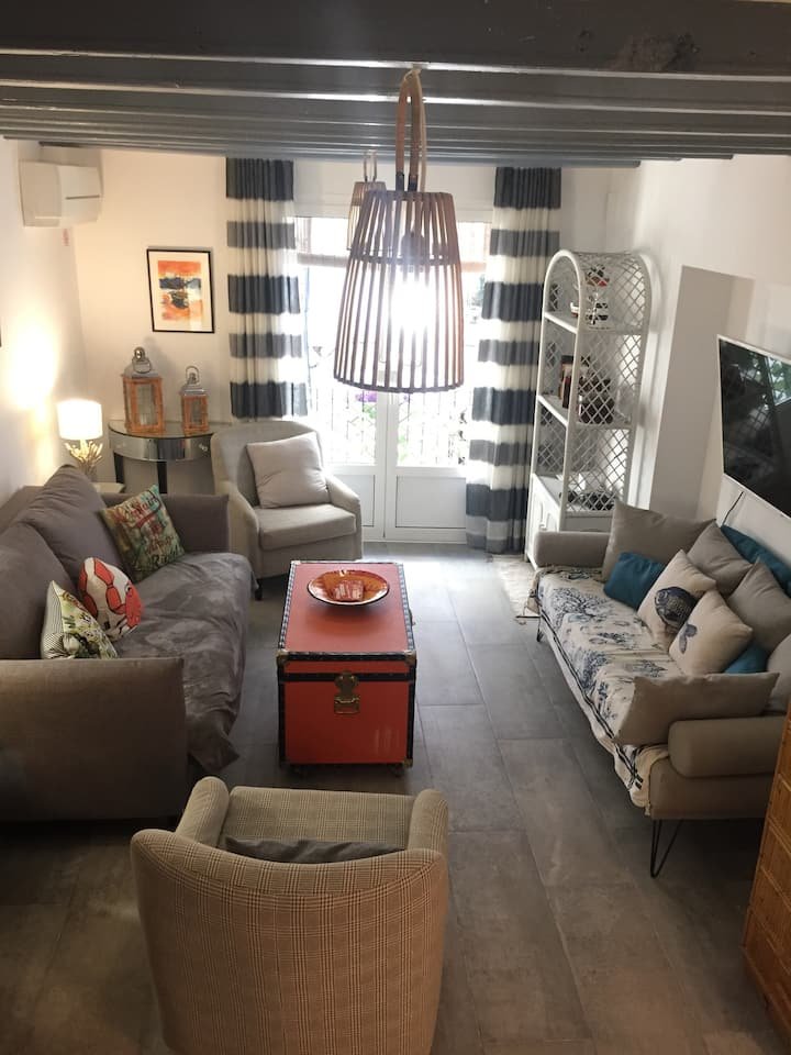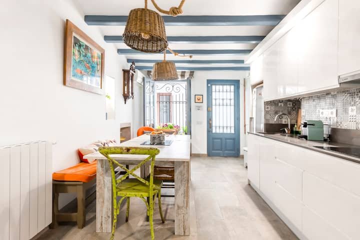 The Fisherman's cottage is over 100 years old but has been lovingly updated with all mod cons. Smart TVs in all rooms, free unlimited wifi, fresh interiors and a perfect location. The cottage is on one of the oldest and most picturesque streets in the Old Town of Sitges. It's is often the route for the major festivals and is full of character with all the festivities on those special fiestas. The flowers which Sitgeans arrange on the pavements for Corpus Christi are laid right outside the door. In spite of being so close to the heart of town and so near the centre - a five min max walk - and near many shops and restaurants - the street is residential and relatively quiet after 11pm. You can walk about 100 steps and be on the San Sebastián beach (very family friendly) with an amazing view of the Mediterranean. Balmins, a beautiful cove, is about ten minutes walk away passing by many lovely seafront restaurants and a beautiful church on the way. You are minutes away from the Maricel Museum and Cau Ferret which was home to the Spanish painter Santiago Rousinol and the iconic Santa Tecla church. The main promenade with many more beautiful beaches stretching along the coast and the "street of sin" where all the nightlife is mainly situated are ten minutes leisurely walk max. I love the atmosphere of the fisherman's cottage and it's wonderful location and I hope to welcome you to so you can share the special experience.